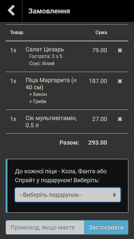 Система дозволяє створювати різноманітні акції та знижки. Приклади акцій, які ми реалізовували у системі для наших клієнтів:
